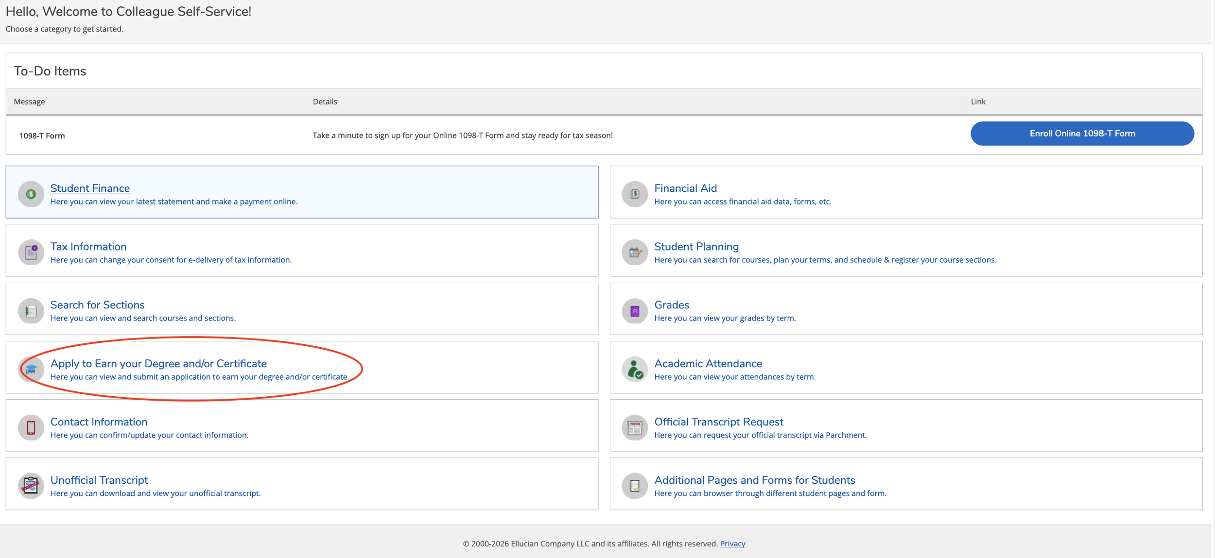 Screenshot courtesy of Dorothy Vazquez: Where students can apply for their degrees or certificates in the digital self-service portal.